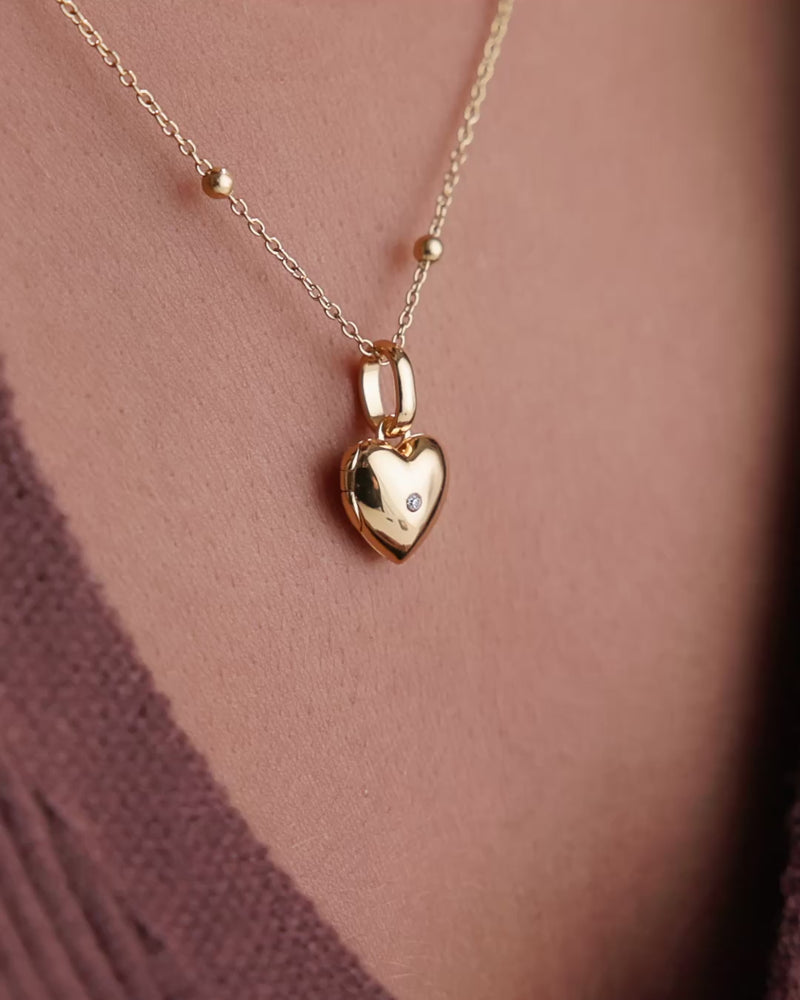 Designed to hold your most cherished memories, this 18k gold-plated heart locket keeps loved ones close wherever you go. Personalise it with a fingerprint engraving or a heartfelt message inside, and add a birthstone on the front to represent someone special. A timeless piece to wear every day or give as a truly meaningful gift