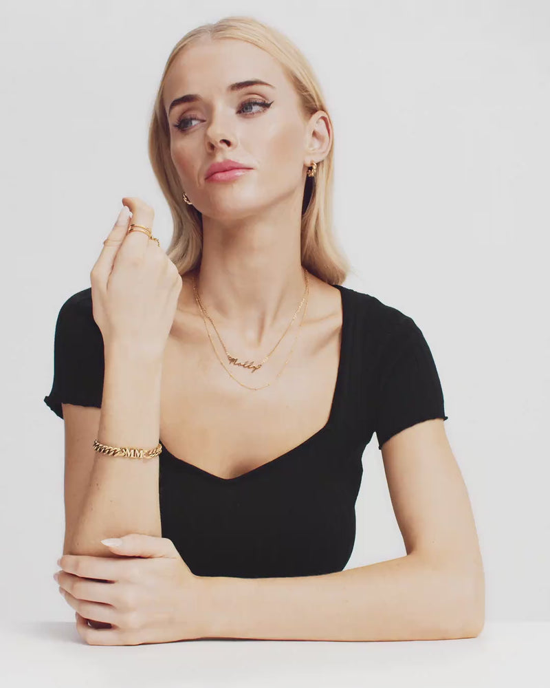 Handmade to order, select the personalised initials of your choice to add to our statement curb chain and create a stunning, bespoke bracelet that’s all about you or someone special.