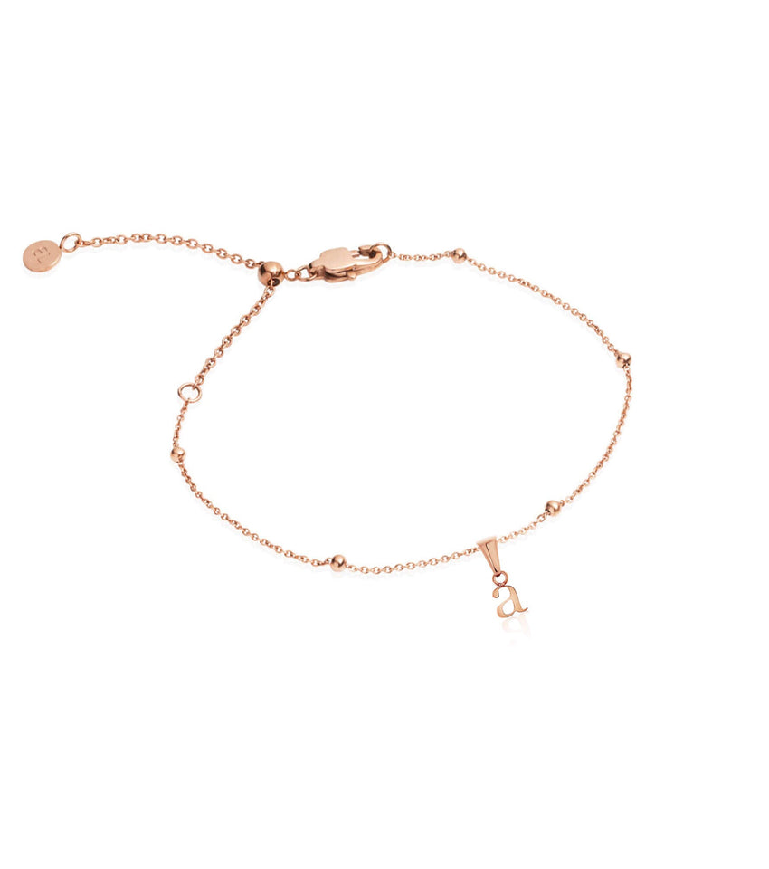 Lowercase Initial Sphere Chain Bracelet (Rose Gold)