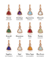 Make your bracelet even more personal to you by adding the birthstone of your choice. Featuring luxury 18k rose gold plating, these beautifully refined pendants will add a special touch to your initial bracelet, or will make an extra thoughtful gift for someone special!