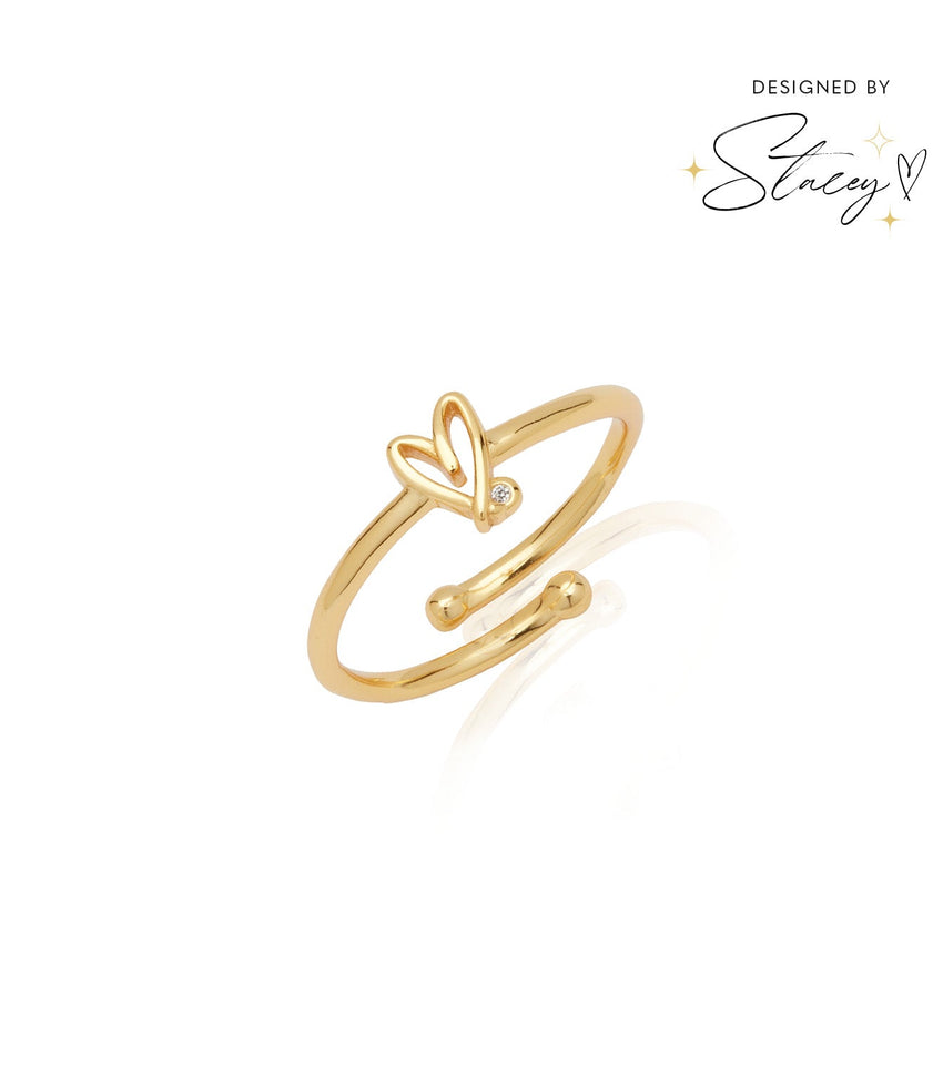 Stacey's Stories Doodle Heart Crystal Ring (Gold)