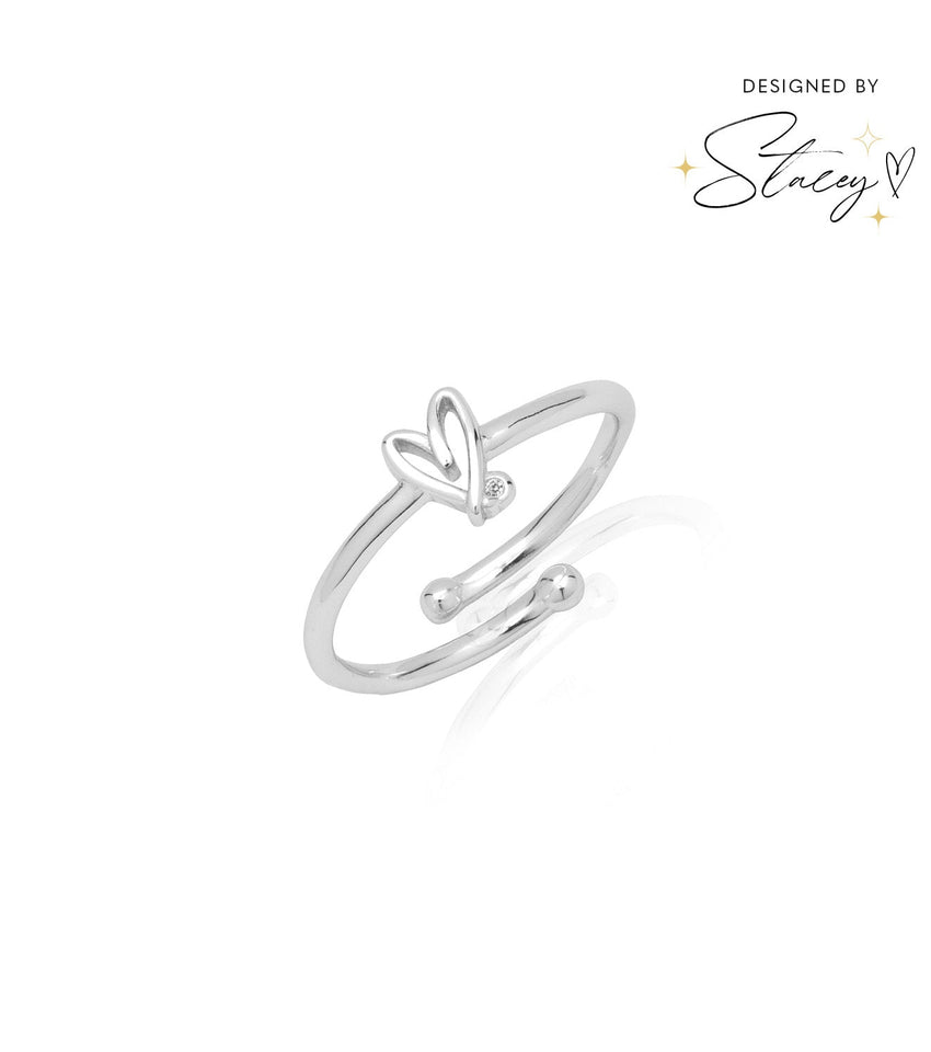 Stacey's signature doodle heart design is the focus of this silver ring, made extra special with the customisable birthstone sat alongside it. This adjustable ring makes the perfect gift, on its own or with another piece from Stacey's Stories collection.