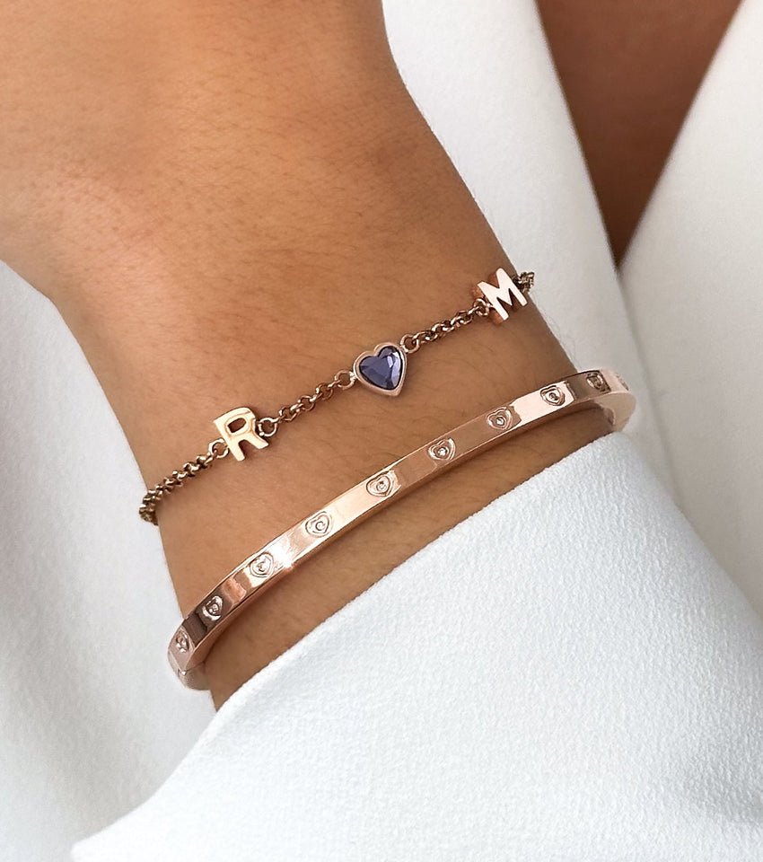 Made Mine Initials & Birthstone Bracelet (Rose Gold)