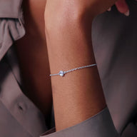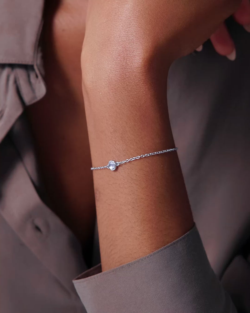 One of our daintiest personalised designs yet. A timeless way to carry your birthstone or someone special’s, this understated yet elegant bracelet adds a touch of colour and meaning to any look. Finished in premium silver plating, every detail is crafted with lasting luxury. Want to add more charms? Choose our Made Mine Charm Bracelet and customise with birthstones and symbols that tell your story.