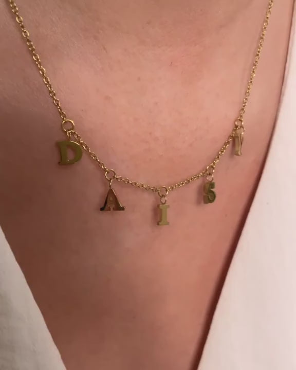 Help others discover Mini Hanging Letter Name Necklace (Gold)