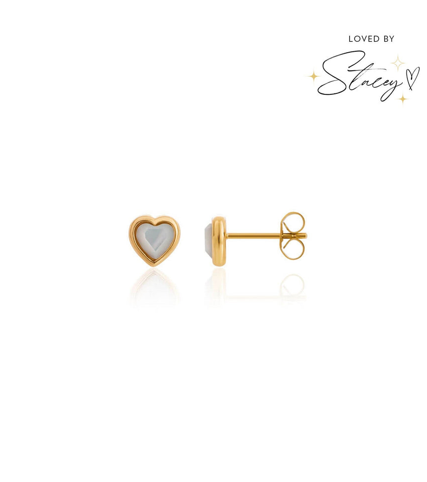 Mini Heart Birthstone Stud Earrings (Gold)