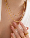 16" | Our most popular length! Sits just below the collarbone. Great for everyday wear and most necklines.