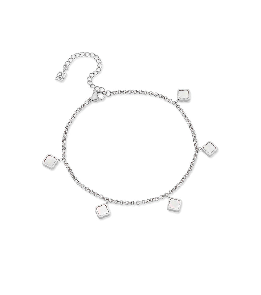 Add luminescent shine to every step with this silver anklet. Each clover is set with a pearly inlay - perfect for adding subtle elegance any outfit. Gift it to someone you love - even if that someone is you! - and match with one of our other Mini Clover pieces.