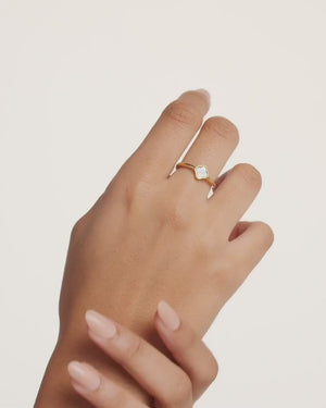 Our new designer-inspired clover shape with a pearly inlay is finally available in ring form. This dainty gold piece will look stunning on its own, or when you wear it with the matching earrings, necklace and bracelet.