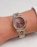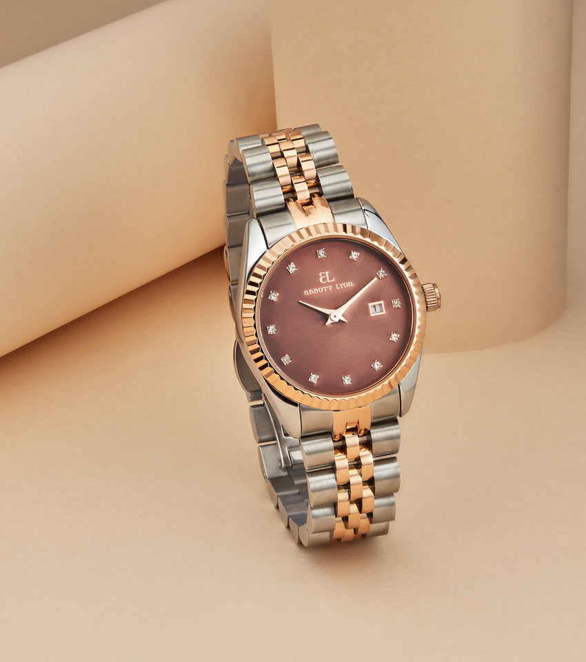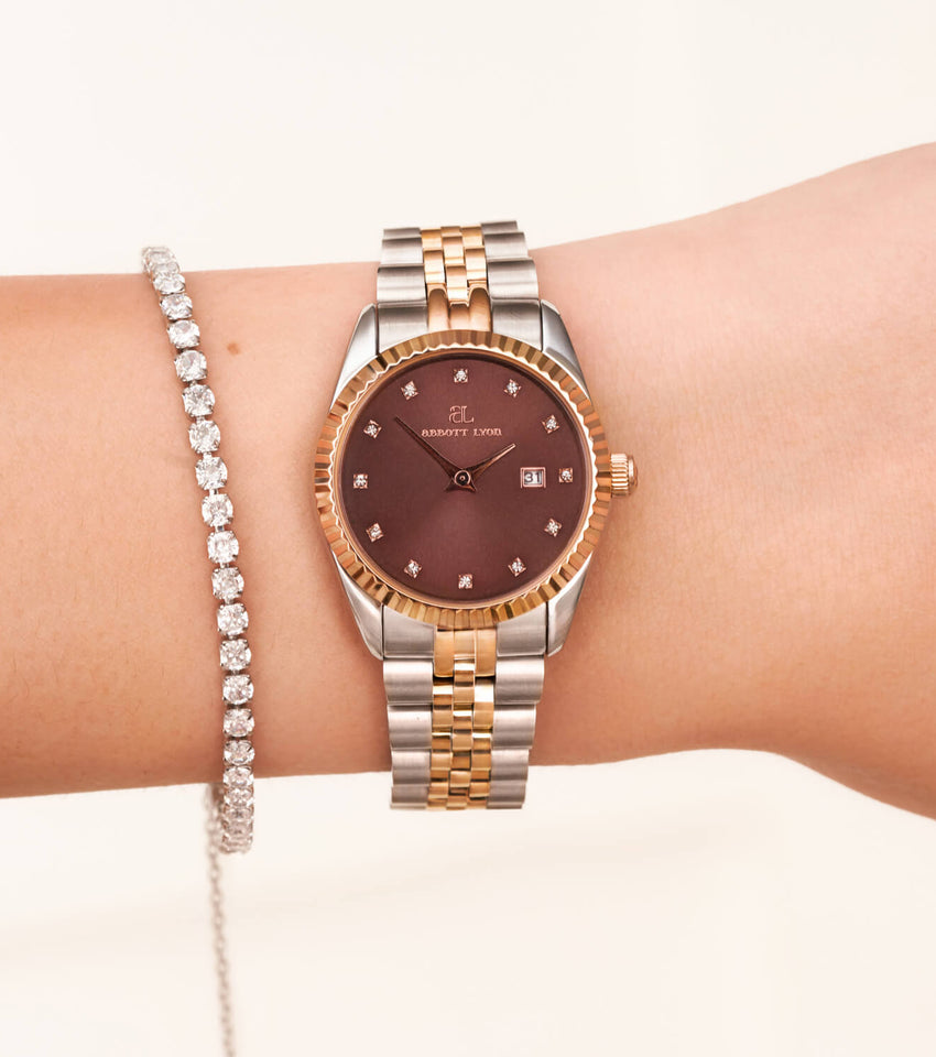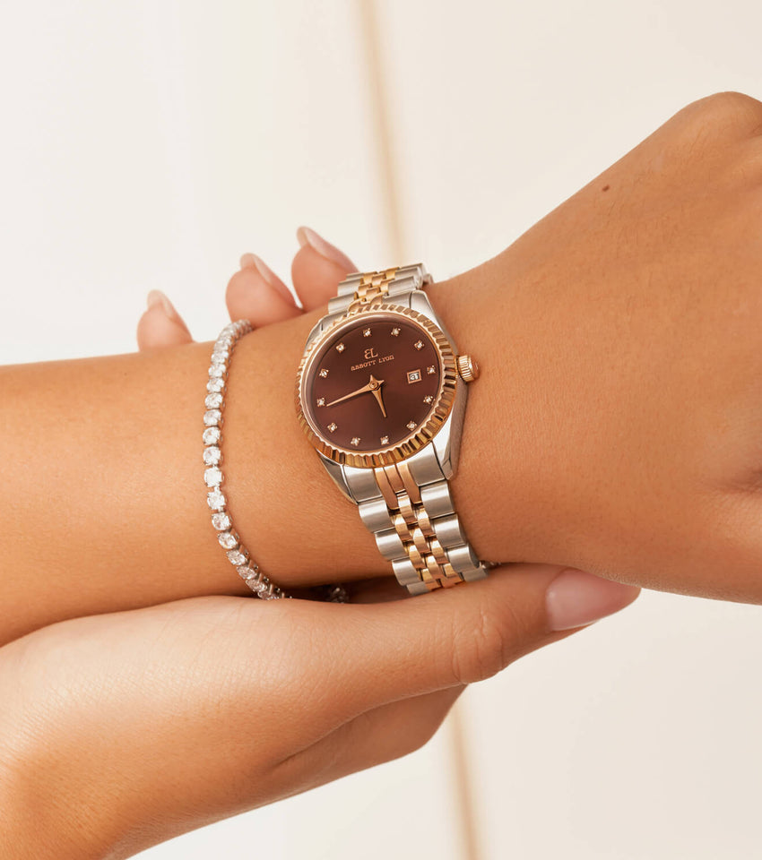 Our best-selling Mini Belgravia watch gets an update with a rich, mocha face, framed in polished rose gold for a multi-tonal, eye-catching finish. It's daintier, 30 mm diameter makes it perfect for everyday wear, and the perfect gift.