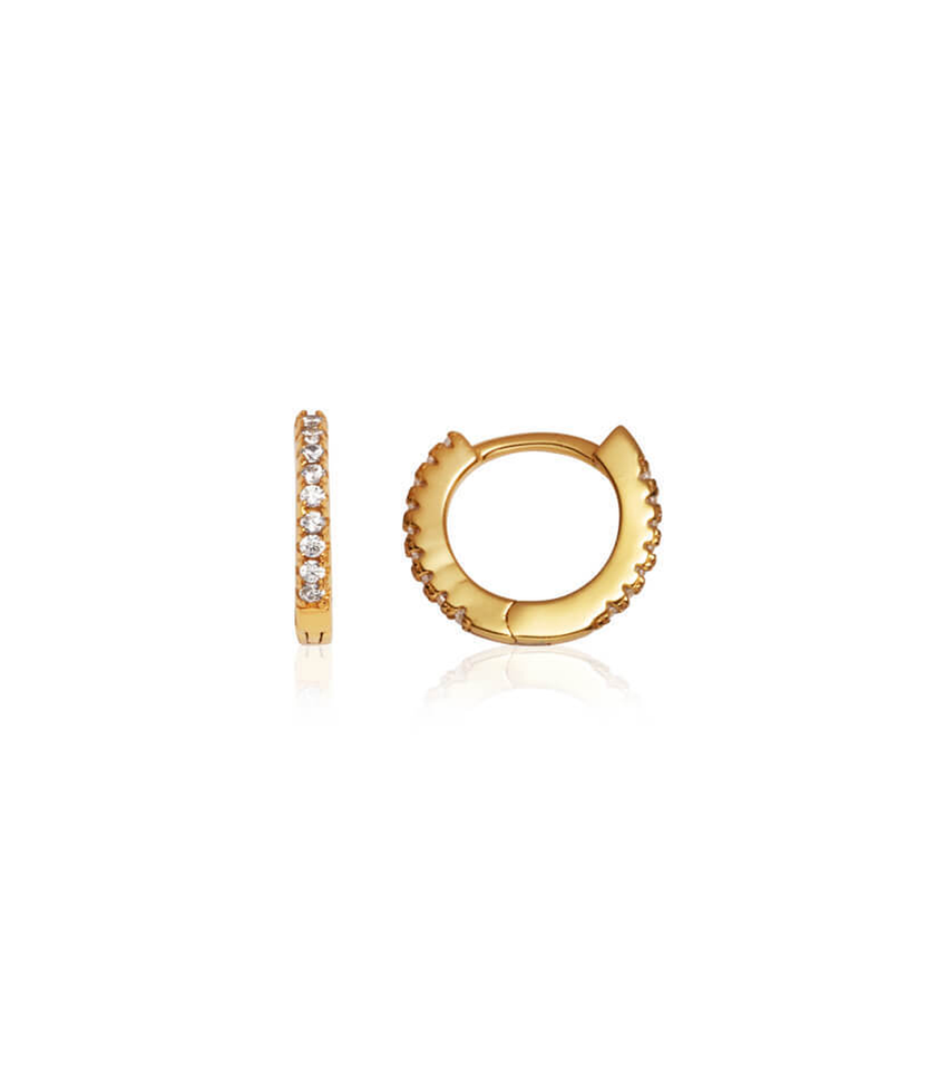 Sterling Silver Crystal Huggie Hoop Earrings (Gold)