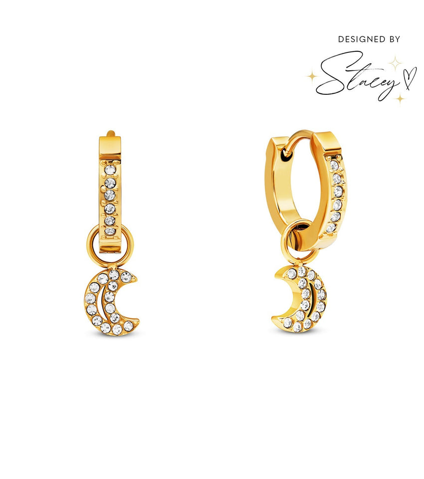 Moon and Back Moon Huggie Hoop Earrings (Gold)