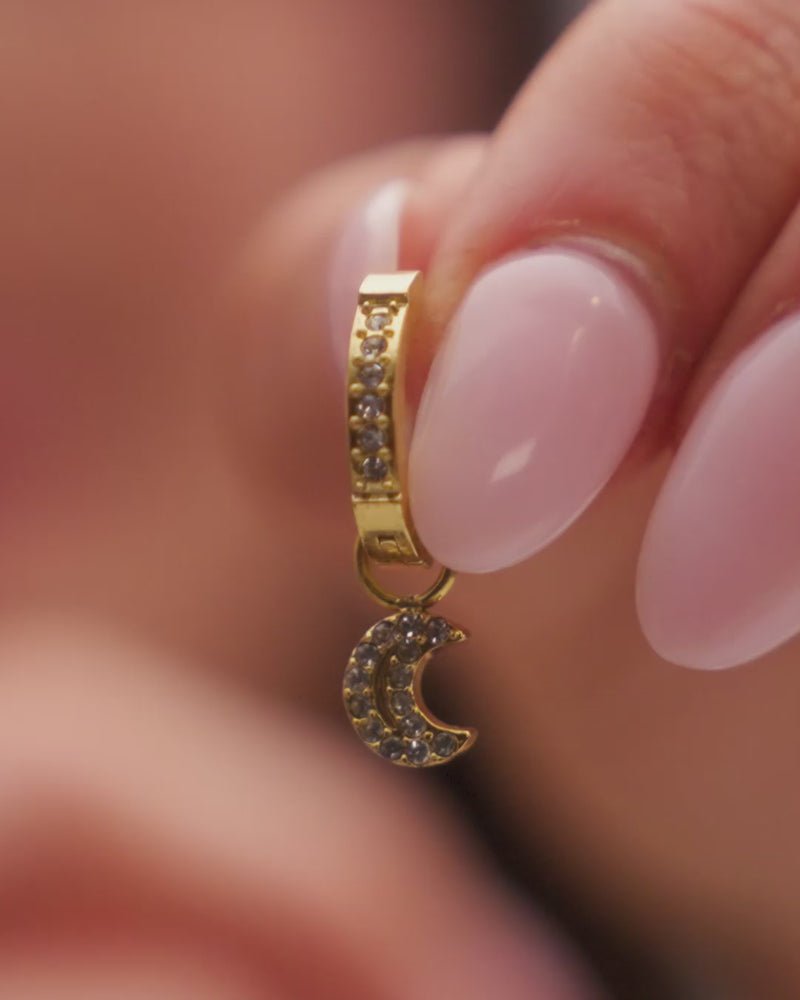 Serve nighttime elegance each and every day with these 18k gold-plated moon charm huggie hoop earrings. Part of the To The Moon And Back Collection, they’re perfect for everyday wear and gifting to your favourite friends.