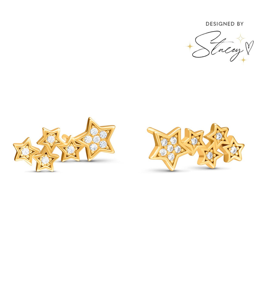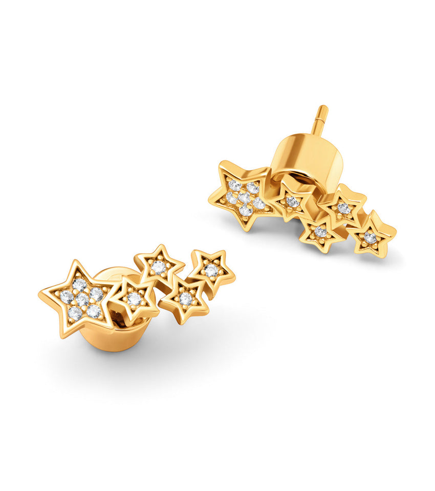 Don’t be afraid to stand out in these 18k gold-plated star climber earrings with a crystal pavé finish. Part of the To The Moon And Back Collection, they’re perfect for making a statement with any outfit, from night to day. Gift to a friend who deserves all eyes on them.