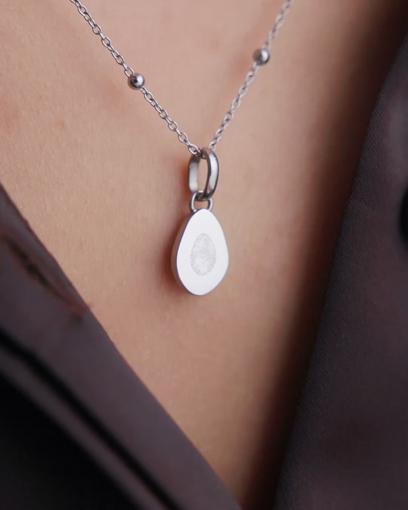 Help others discover Organic Fingerprint Droplet Necklace (Silver)