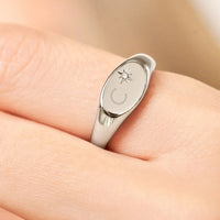 Signet rings are a must-have in any ring collection, and this one is timeless. The oval design is set with a touch of sparkle, and there's room right next to it for engraving an initial. Choose the font, too, so you can make it super unique for yourself or someone special.