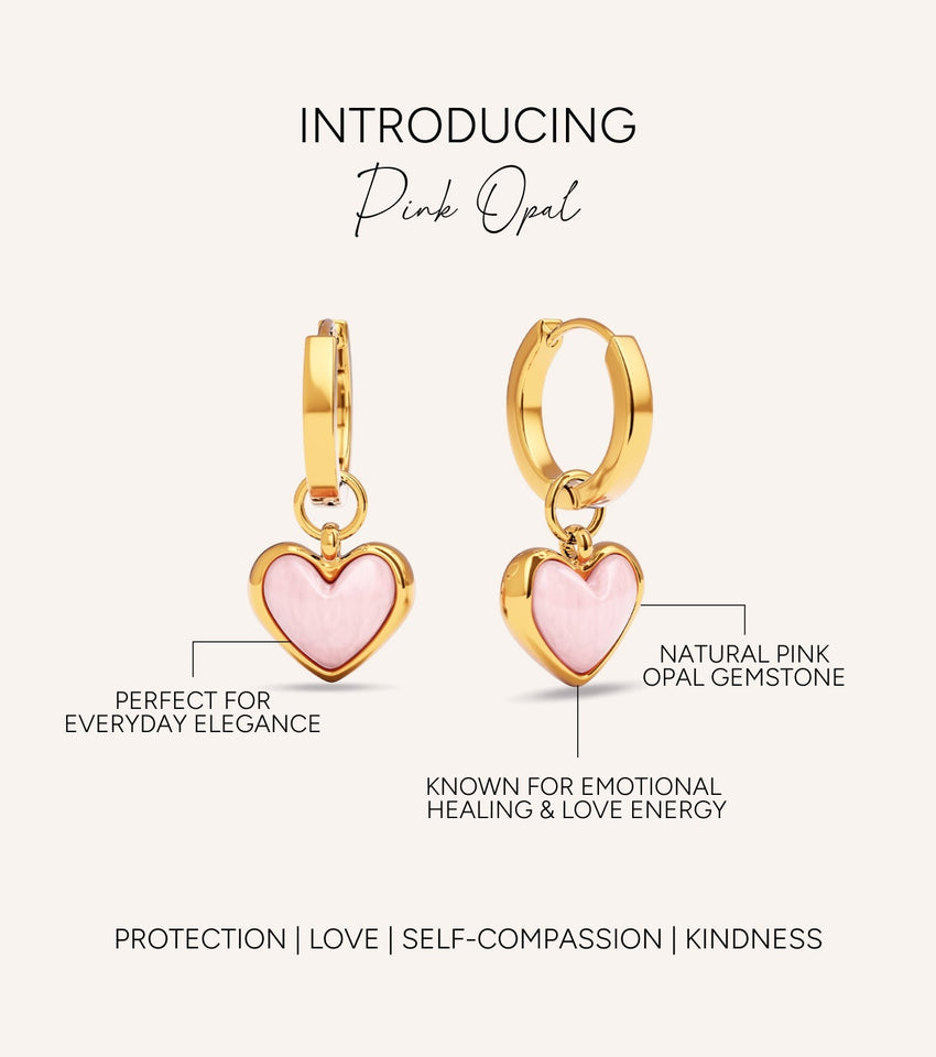Help others discover Pale Pink Opal Heart Huggie Earrings (Gold)