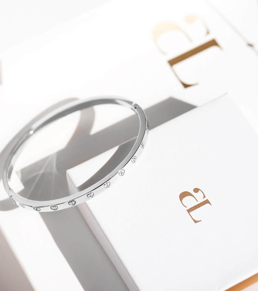 Help others discover Pearl Belgravia & Crystal Heart Bangle Set (Silver)