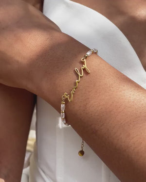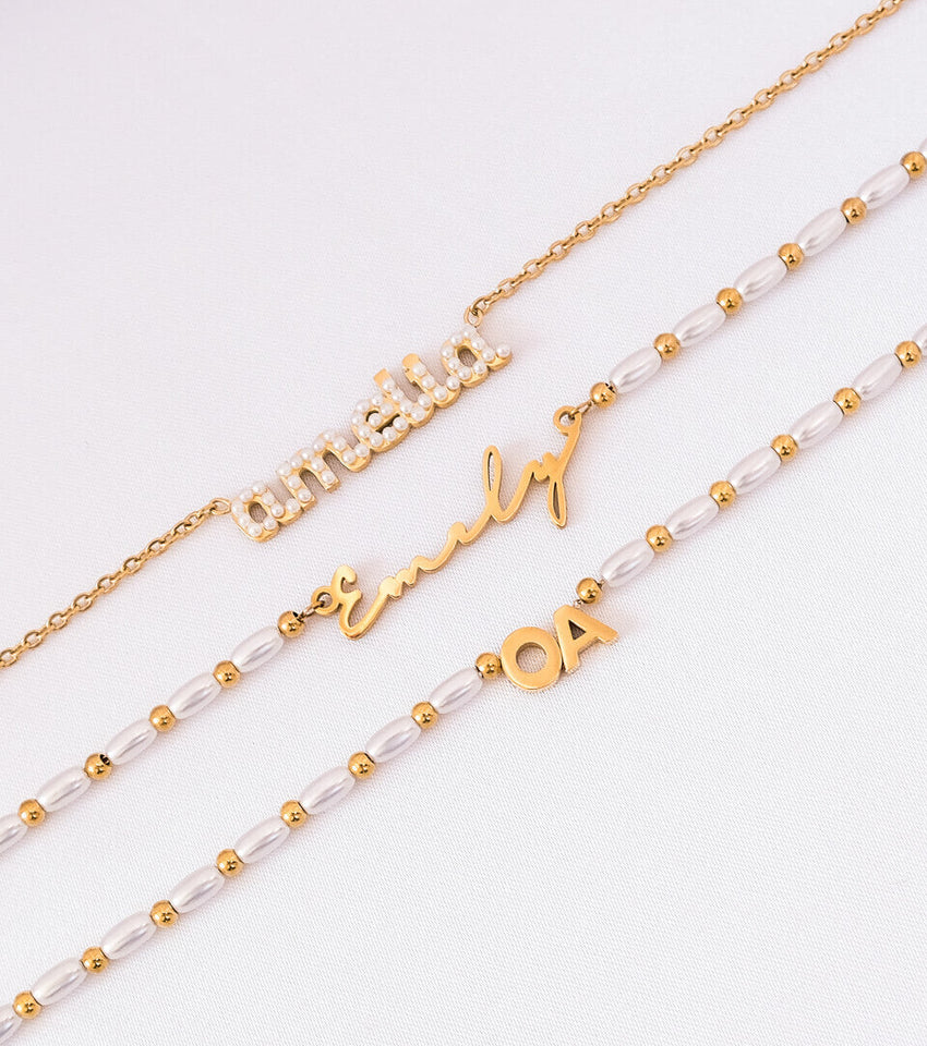 Help others discover Pearl Chain Signature Name Bracelet (Gold)