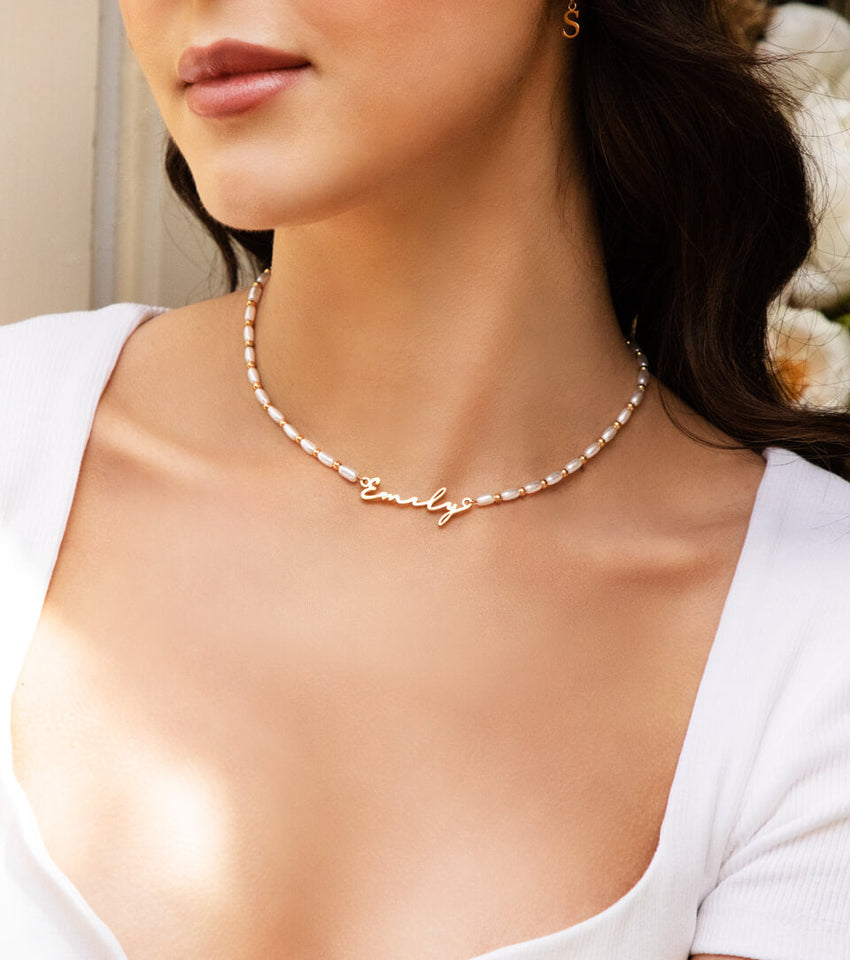Add a romantic touch to your look this season with our gorgeous pearl chain signature name necklace, representing beauty and love. Totally unique to you, create a designer-inspired, bespoke piece that celebrates you or makes the perfect gift for someone special.