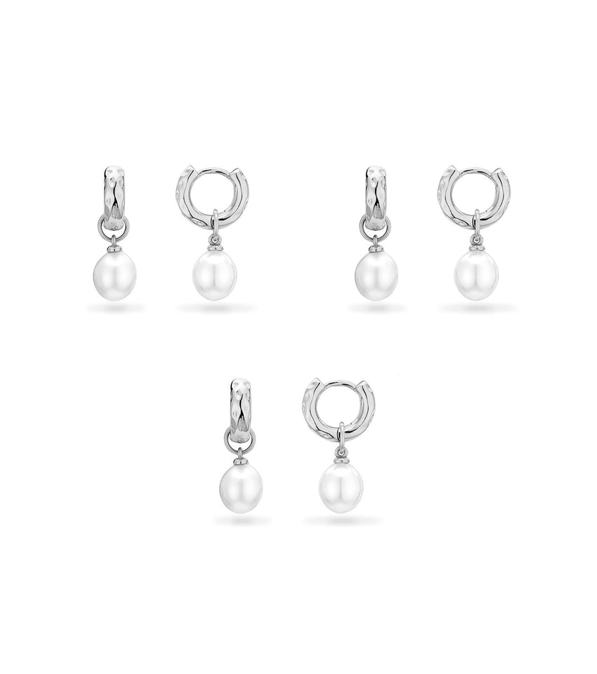 Pearl Drop Huggie Earring Set (Silver)