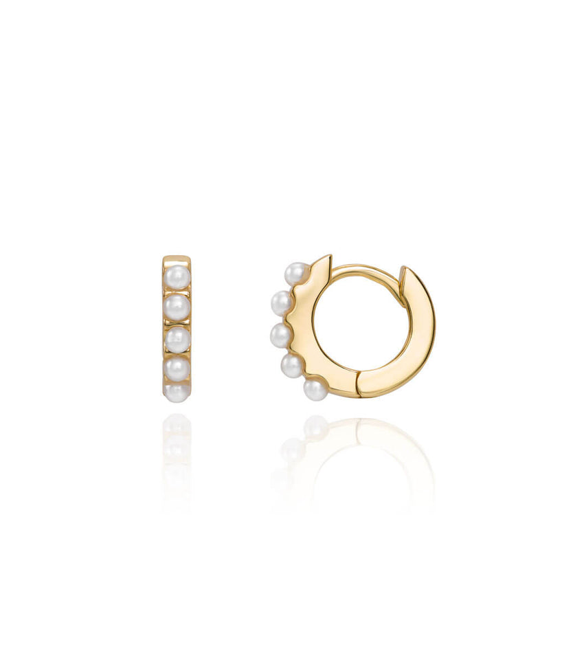 Help others discover Pearl Huggie Hoop Earrings (Gold)
