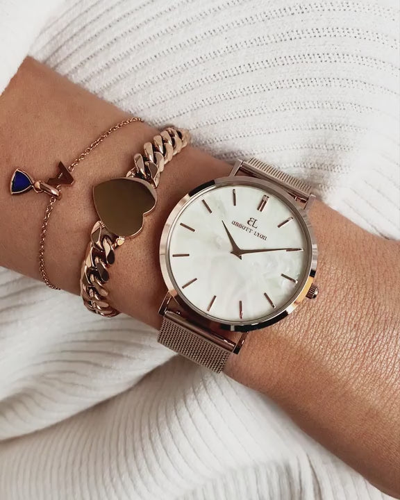 Beautifully refined and the perfect treat, our personalised Rose Gold Initial Bracelet is ideal for gifting. This pretty bracelet looks super luxe when paired with any of our premium watches, and will add a chic finishing touch to any look. Select the letter of your choice, and spoil yourself or someone special!
