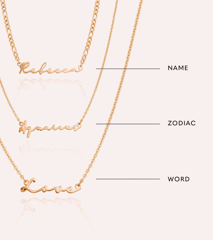 With a range of chains, colours and styles to choose from, our iconic Name Jewellery collection enables you to create the ultimate signature accessory, and make the perfect gifts! Our dreamy handmade Signature Necklaces are totally unique to you. Play with up to 12 characters and select your favourite chain to create a classic bespoke Name Necklace that’s all about you or someone special.