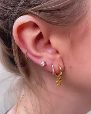 Our stunning new earring collection has something for everyone. Expertly designed in luxe sterling silver, these classic gold-plated huggie hoops are finished with just enough sparkle to make you shine. The perfect base for stacking with more earrings from our collection, the hoops also look super chic styled alone for premium finish to any look.