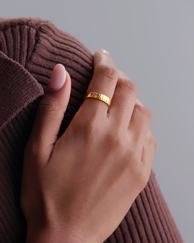 The perfect blend of personalised, statement style – meet our Fine 3D Name Ring. Featuring bold, raised lettering, personalise it with a name or a word that holds meaning to create a piece that’s uniquely yours. Crafted from 18K gold-plated sterling silver, add a touch of luxury to your everyday look with this iconic staple.