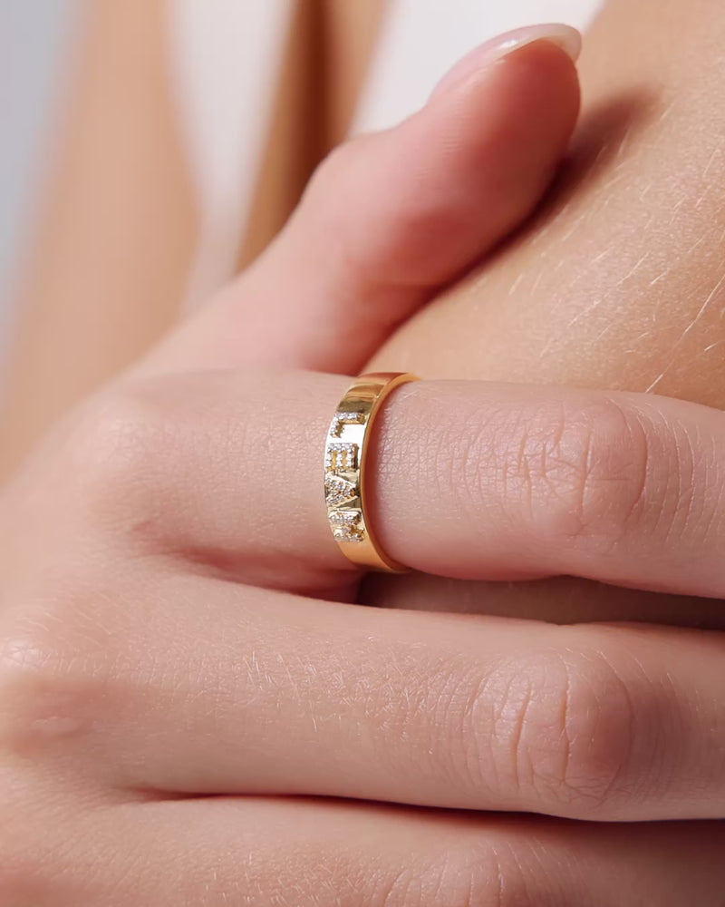 Fine Pavé 3D Name Ring (Gold)