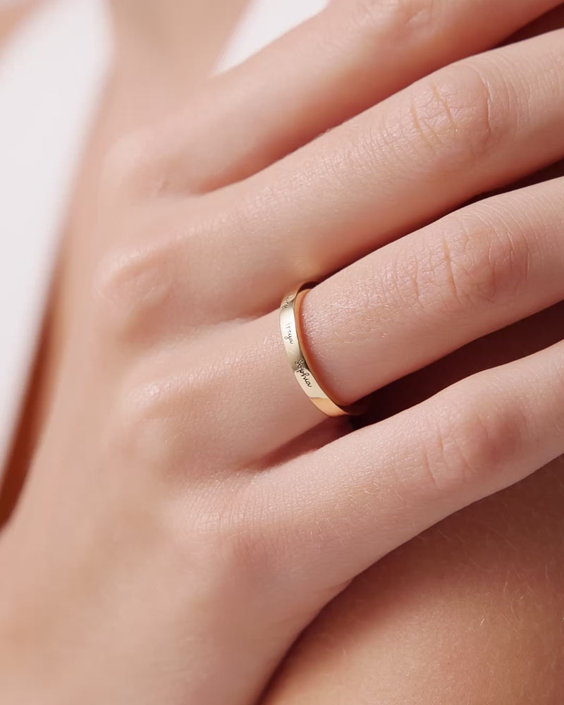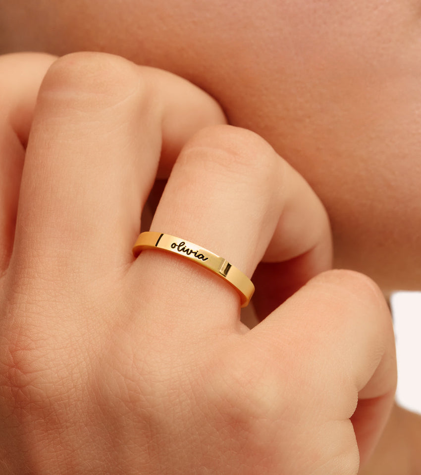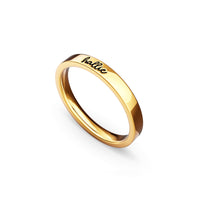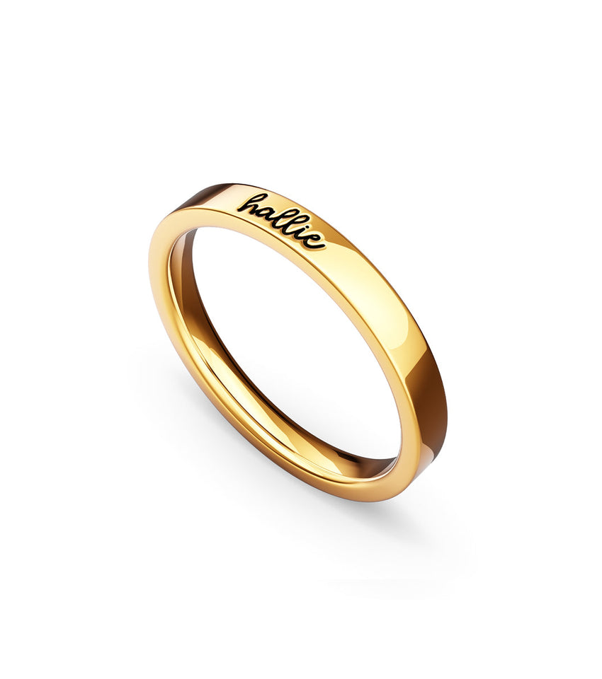 Discover our daintiest collection yet with the engravable Fine Script Name Ring. Made to order in 925 sterling silver with gold plating, personalise with up to three engraved names and stack with our matching charm rings for the ultimate custom look.