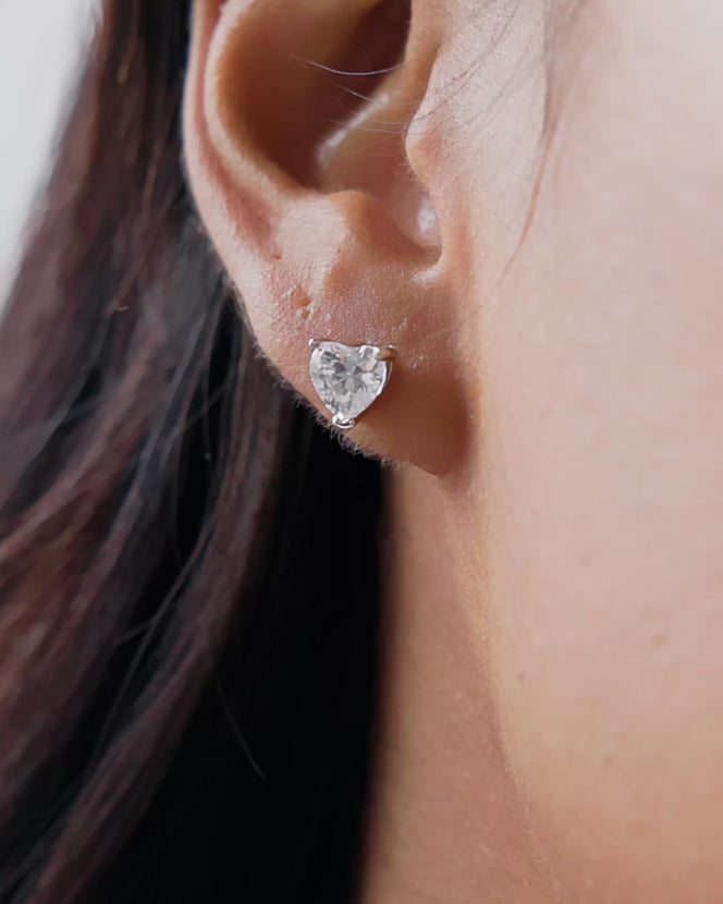 Heart Solitaire Stud Earrings 1ct (Silver)