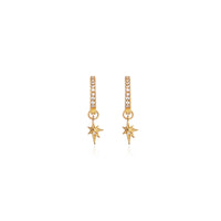 Our stunning new earring collection has something for everyone. Expertly designed in luxe sterling silver, these classic gold-plated huggie hoops are finished with just enough sparkle to make you shine. Topped with our gorgeous crystal starburst charms, these stylish hoops make the perfect base for stacking with more earrings from our collection.