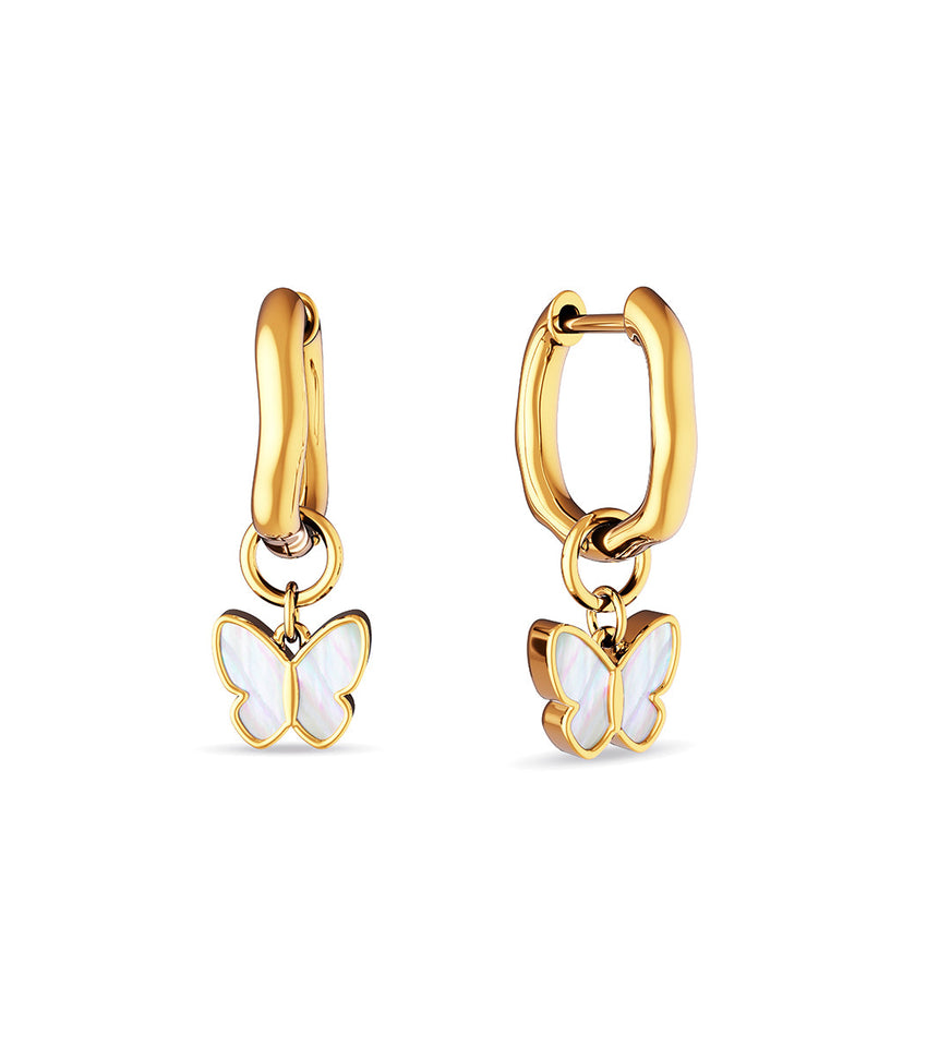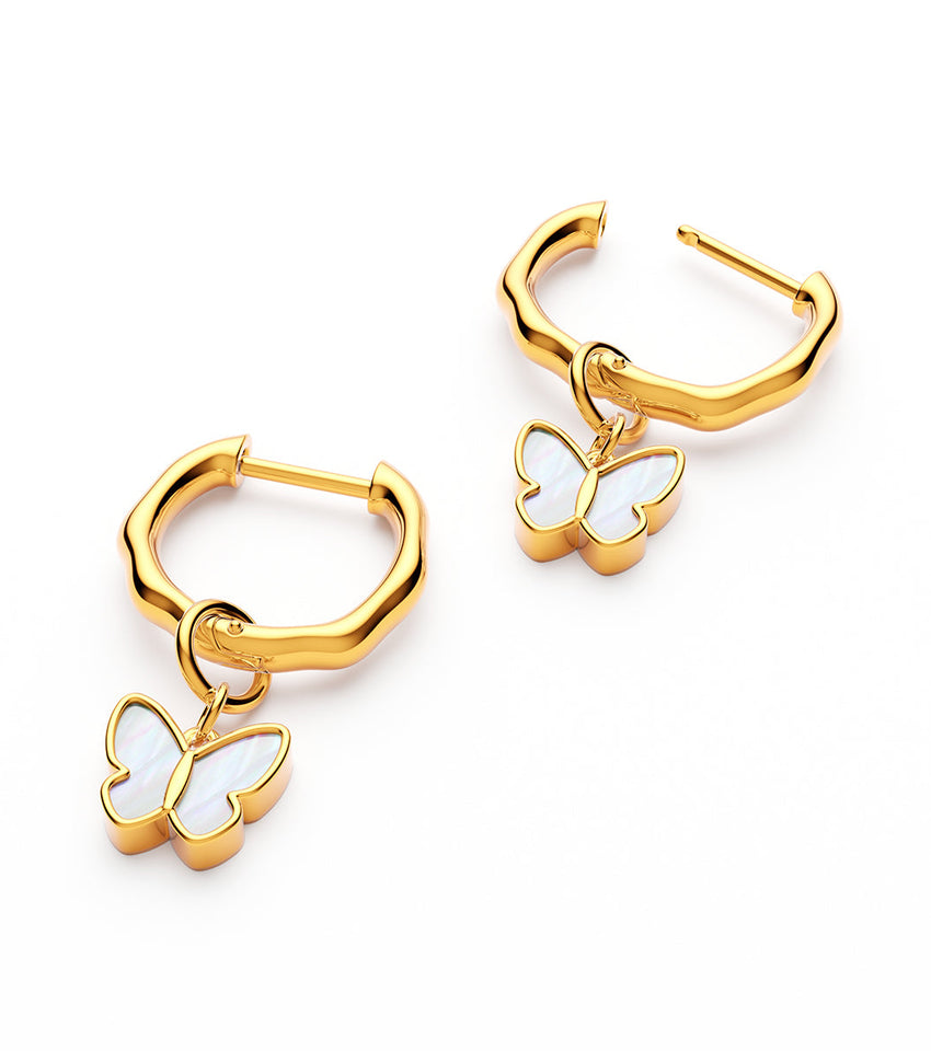 Fine Molten Mother of Pearl Butterfly Huggie Earrings (Gold)