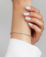 A must-have accessory, our stunning tennis bracelet will give a subtle touch of sparkle to your every day look. Featuring pretty clear crystals, style this chic piece with other bracelets from our collection to create a luxe stack with impact.