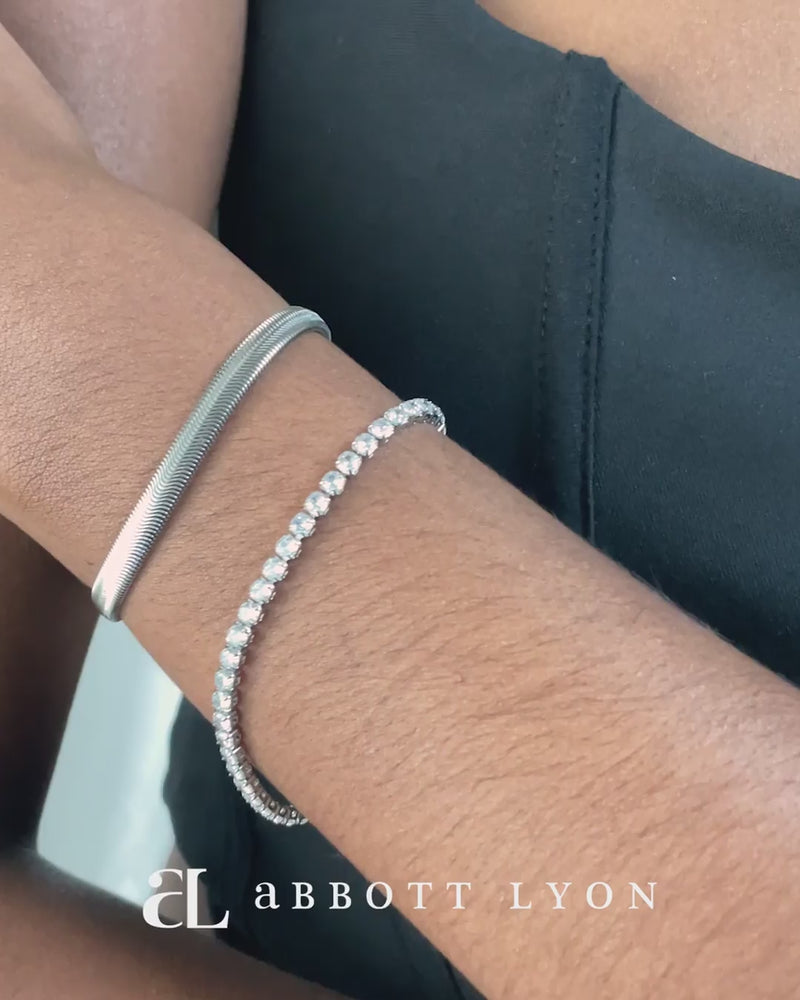 A must-have accessory, our stunning tennis bracelet will give a subtle touch of sparkle to your every day look. Featuring pretty clear crystals, style this chic piece with other bracelets from our collection to create a luxe stack with impact.