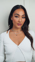 14" | Sits snugly at the base of your neck. Perfect for layering and high necklines.