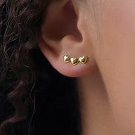 Our Triple Heart Climber Earrings features a row of dainty bubble hearts that gently curve up the ear. Finished in 18k gold plating, it’s the perfect piece to add a little edge to your everyday. Wear it solo, or stack with your favourite Abbott Lyon hoops for a luxe look you’ll love.