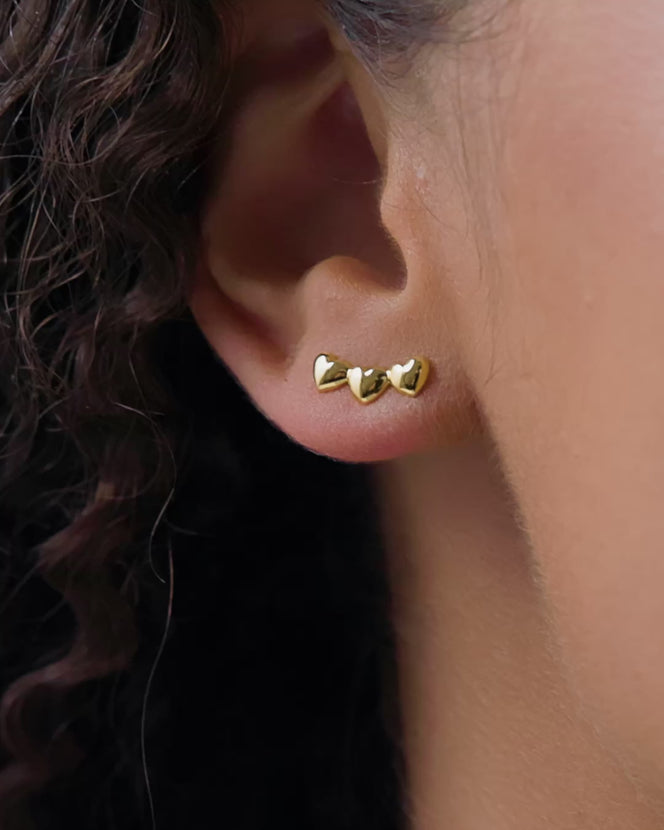 Triple Heart Climber Earrings (Gold)