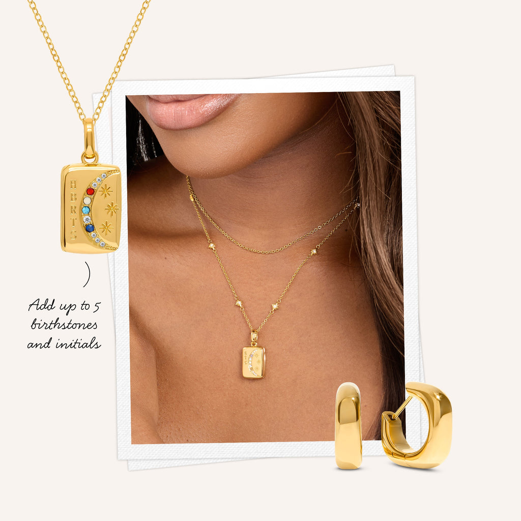 Part of the Written In The Stars collection, this celestial tag necklace is designed to celebrate unbreakable bonds. Personalise the front with a handwritten note to create a truly meaningful piece, then add a fingerprint on the reverse to keep your loved ones close wherever you go. A subtle crystal crescent moon at the chain opening adds a touch of sparkle, making it a timeless piece to wear solo or layered with your favourite chains.