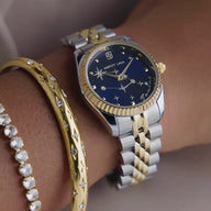 The ultimate cosmic stack – this set features Stacey Solomon's Belgravia 30mm Zodiac Watch, the Moon & Back Bangle, and our classic Tennis Bracelet. The watch showcases a celestial-inspired dial detailed with sparkling cubic zirconia constellations, complete with zodiac traits and engraving on the reverse. The bangle and bracelet shimmer with crystal star accents. Together, this trio is perfect for elevating everyday style or gifting someone special.